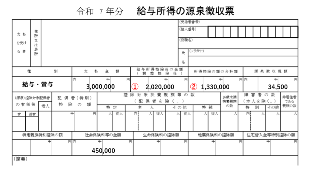 では、実際に津田様はiDeCoをすることでいくら節税ができるのかを見ていきましょう。どのくらいの節税が可能なのかを知るためには、源泉徴収票を用いて、現在の課税所得を確認します。