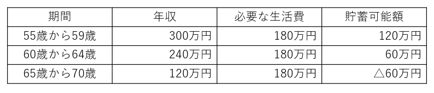 また65歳までの5年間の余剰資金はそのまま70歳までの生活費に不足する資金として充当できれば、70歳以降は年金だけでの生活がおくれそうです。