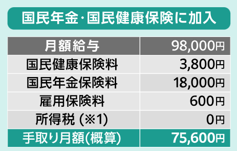 他方、厚生年金に加入することで、手取りが増える方もいます。以下は、厚生年金加入前の手取りです。これが、厚生年金に加入することで、上記でお示しした手取り83,500円に増額します。
