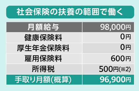 扶養内で働いていた人の手取り収入例