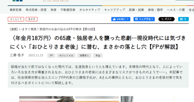 こんにちは。神奈川の湘南でFPと社会保険労務士の二刀流で活動している三藤です。
