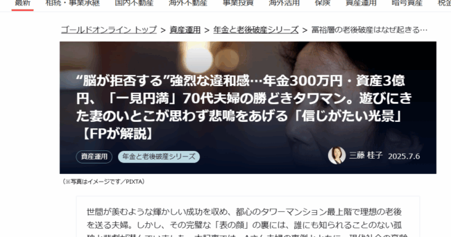 ファイナンシャル・フィールドに掲載されました。とても関心が高いテーマだったのか、多くの方に読んでいただいているようで、もしかすると将来に不安を感じている方が多いのかと感じています。