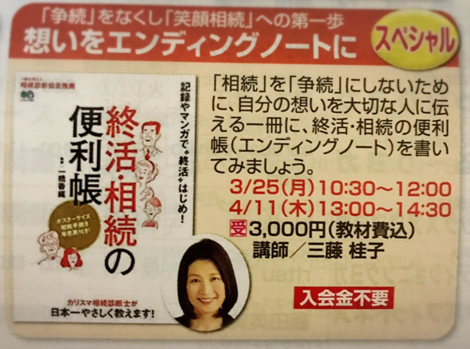 第2回目のエンディングノートの書き方セミナーはまだ受付しています!