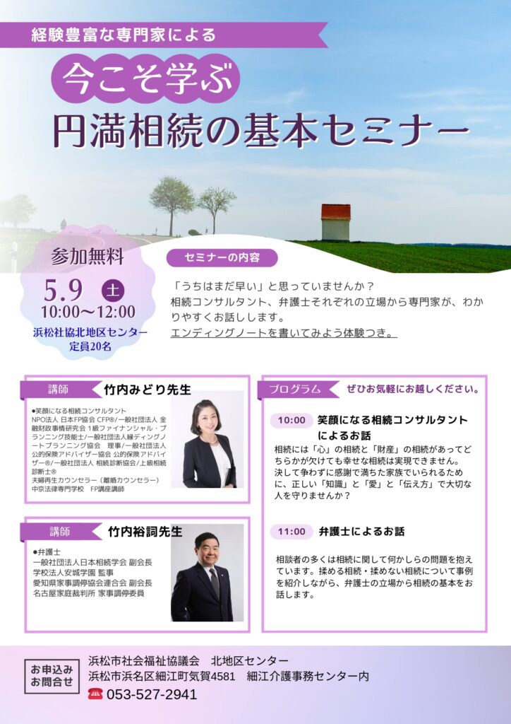 経験豊富な専門家による「今こそ学ぶ 円満相続の基本セミナー」