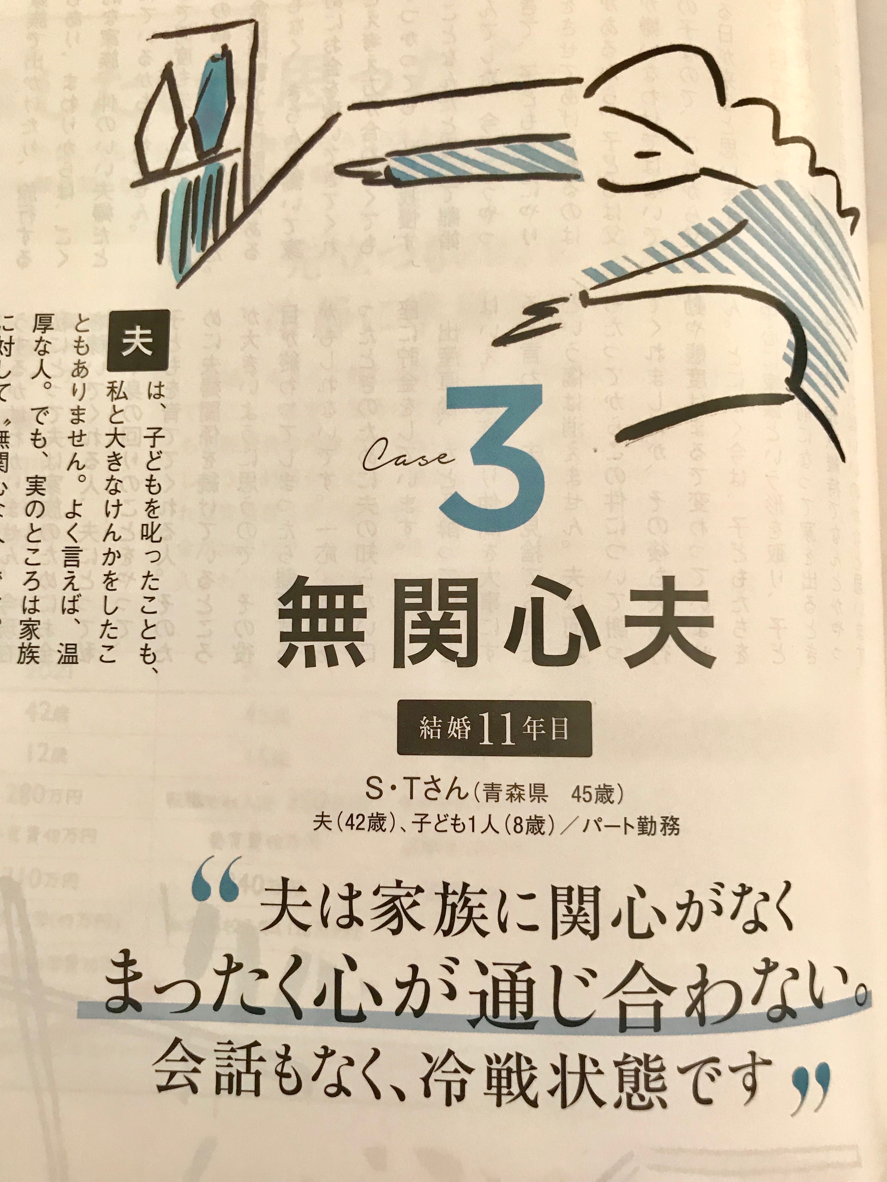 傍から観たら「温厚そうなご主人」。しかし実情は、家族に興味がない人いますね。口論にもならないので、決定打がなく離婚にはなりません。こうゆうタイプの夫を持つ妻は大きく2つのパターンに分かれると思います。1つは「文句も言われないから私も勝手にするわ」という人。もう片方は「何考えているかわからない!嫌っ」とそれでもご主人に囚われてしまう人。特に後者の方は「つき合っている間は違った」という人も多く、選択ミスだったのかもしれません。