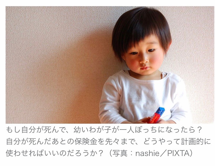 ここ最近、高齢者の運転で死亡者がでてしまう、残念なニュースが相次いでいます。昼間の運転が多い高齢者の事故。犠牲になるのは、親子や若い人たちが多い様です。もし、離婚して女でひとつで頑張っている人が事故にあったら・・もし、幼い子を残して命を失う、または障害を抱えてしまったら。不安をあおるのは趣味ではないのですが、そんな事もあります。いや、実はこの生命保険信託は、そんな惨い実例からできた制度なのでありました。