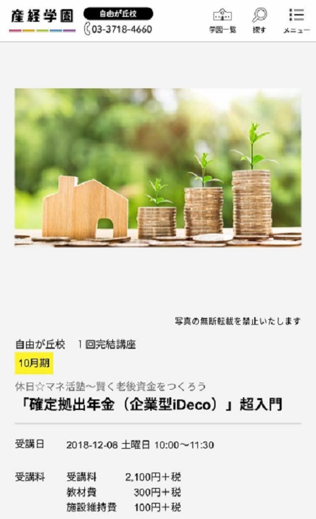 自由が丘産経学園『確定拠出年金(企業型/iDeCo)超入門セミナー』開催
