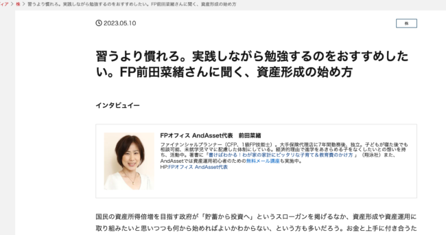 子育て世代の家計のパートナー、FP相談ねっと認定FPの前田です。