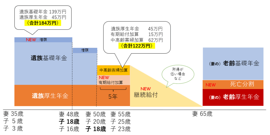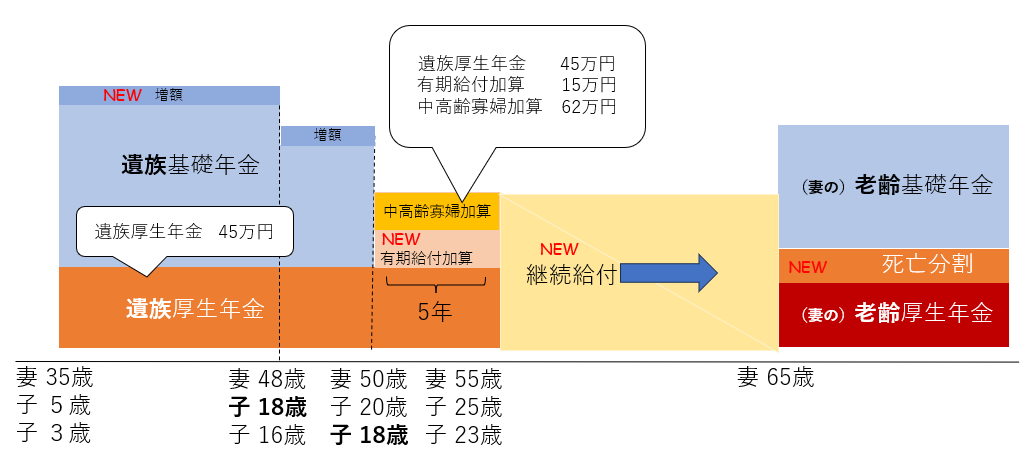 男女ともに配偶者を亡くしてしまったら、生活を再建するための5年間はより手厚く支援してくれる形になりました。