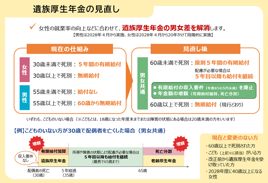 2025年の年金改正では、このような男女の格差を是正するために、遺族年金制度の見直しが行われます。