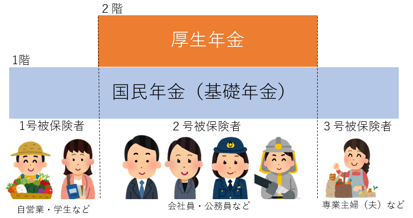 公的年金は「2階建て」と言われ、1階部分が国民年金(基礎年金)、2階部分が厚生年金(報酬比例年金)で構成されています。