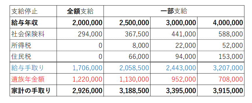 ここの基準まで給与収入があっても、(有期加算を含む)遺族厚生年金は全額支給できる見込みです。