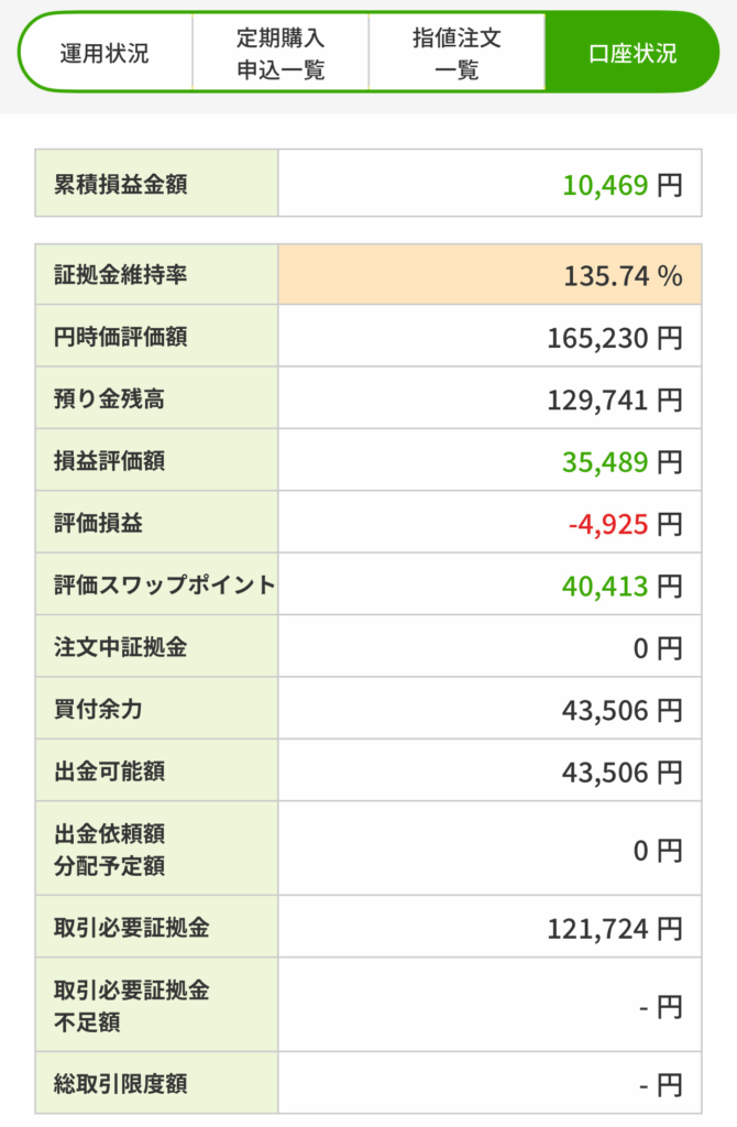 | 月間キャッシュフロー ※キャピタルゲイン含まない、月間のインカムゲインのみの数字です。 (以下含む) ・スワップポイント ・分配金 ・配当金 | 4,676円 ※真の元本比+1.35%の利回り |