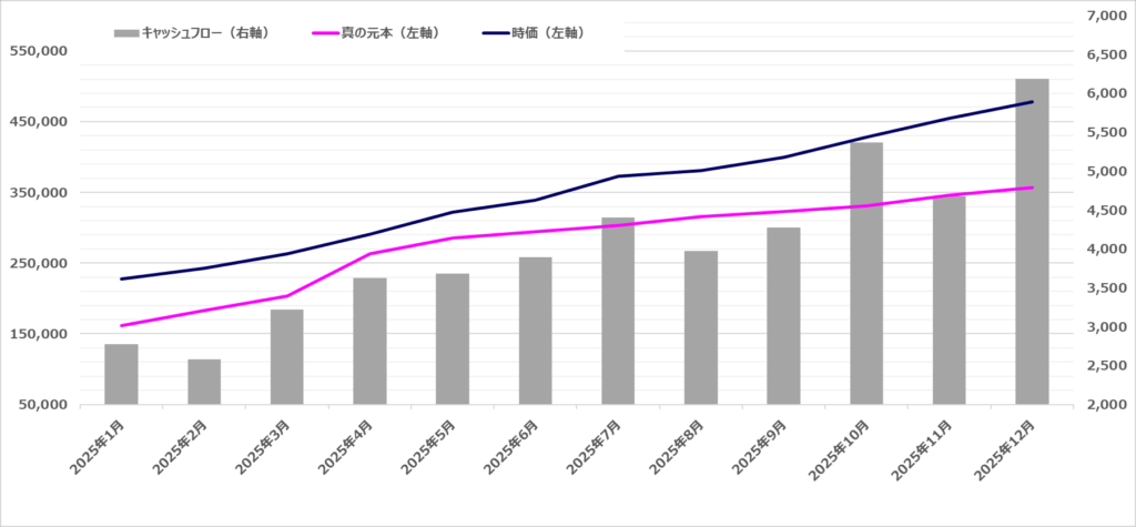 真の元本に対するキャッシュフローの利回りは、1%台を余裕でキープし続けてますので、年間にすると15%を軽く超えます。