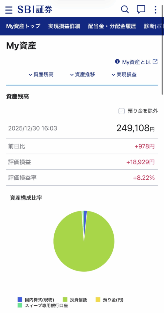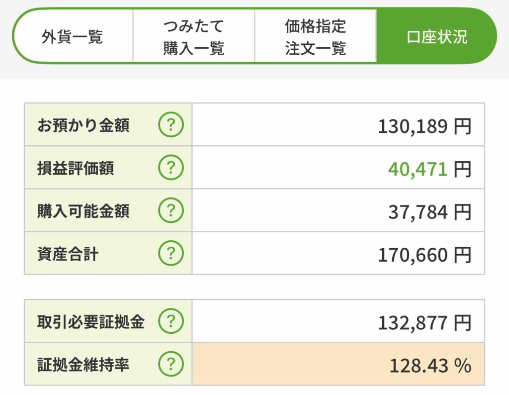 | 時価総額 (以下含む) ・投資信託 ・FX ・ETF ・REIT ・国内株式 ・普通預金 | 477,767円 ※真の元本比+33.78%の含み益 |