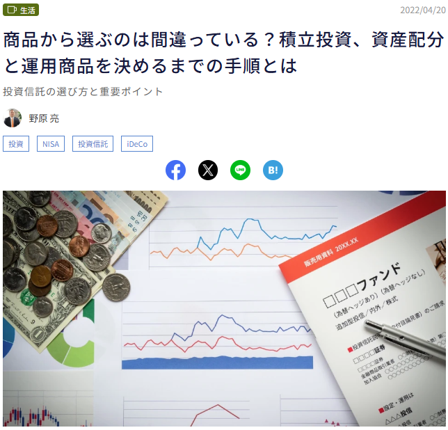 我々が投資を始める際、アセットアロケーション(資産配分)を決定します。