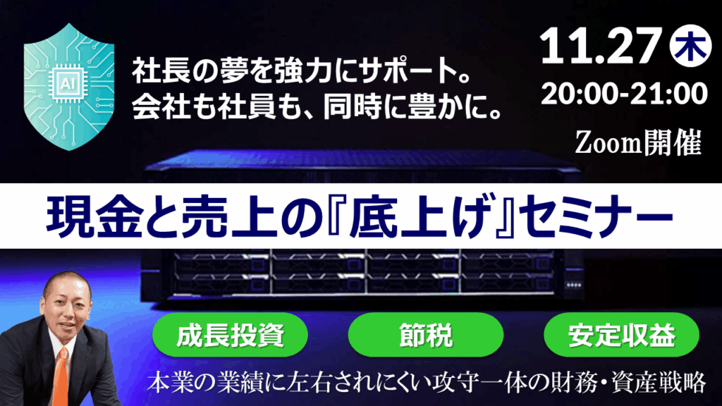 新規開拓を頑張ることも、値上げをお願いすることも、残業して頑張ることも、いっさい必要ない合法的ノウハウで、攻め(成長資産)× 守り(節税)× 安定(売上逓増)の3本柱をどう組み合わせていくとよいのか、実例を交えて解説します。